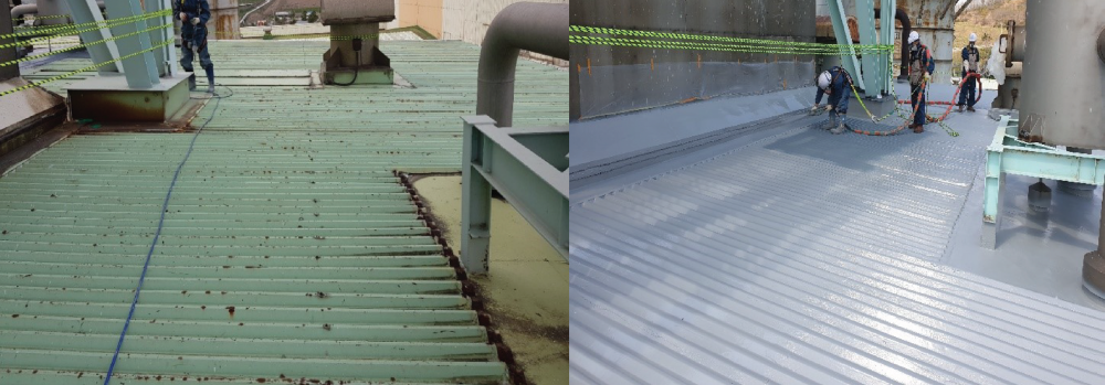 Chống thấm hiệu quả: Polyurea là một loại vật liệu chống thấm tuyệt vời, có khả năng chống thấm nước, chống thấm hóa chất, chống thấm khí, chống thấm áp lực, v.v. Khi được sử dụng để phủ mái tôn nhà xưởng, Polyurea sẽ giúp ngăn chặn nước mưa hoặc nước từ các thiết bị làm việc trên mái xâm nhập vào bên trong nhà xưởng, giúp bảo vệ tài sản bên trong nhà xưởng khỏi sự ảnh hưởng của nước.