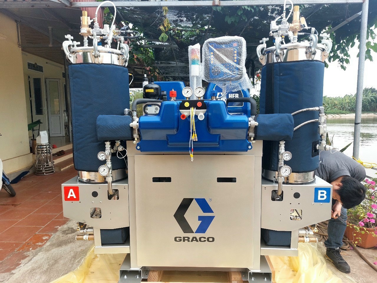 Để sản xuất được ống cách nhiệt bảo ôn chất lượng cao, Smatek đầu tư hệ thống máy phun bọt chuyên dụng Graco HFR Series, đầu tiên tại Việt Nam. Hệ thống này có thể kiểm soát các thông số và điều chỉnh trực tiếp ngay trong quá trình phun để đảm bảo đồng đều và dày lớp cách nhiệt bảo ôn.