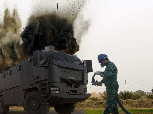 Các lớp phủ bảo vệ Polyurea bảo vệ các phương tiện được bảo vệ bởi mìn / phục kích khỏi súng đạn, vụ nổ mìn, IED và các mối đe dọa độc hại khác.