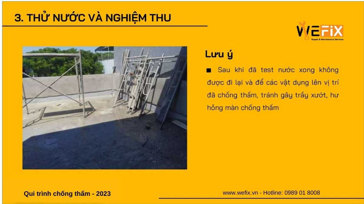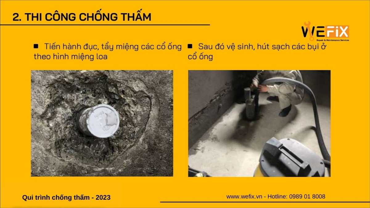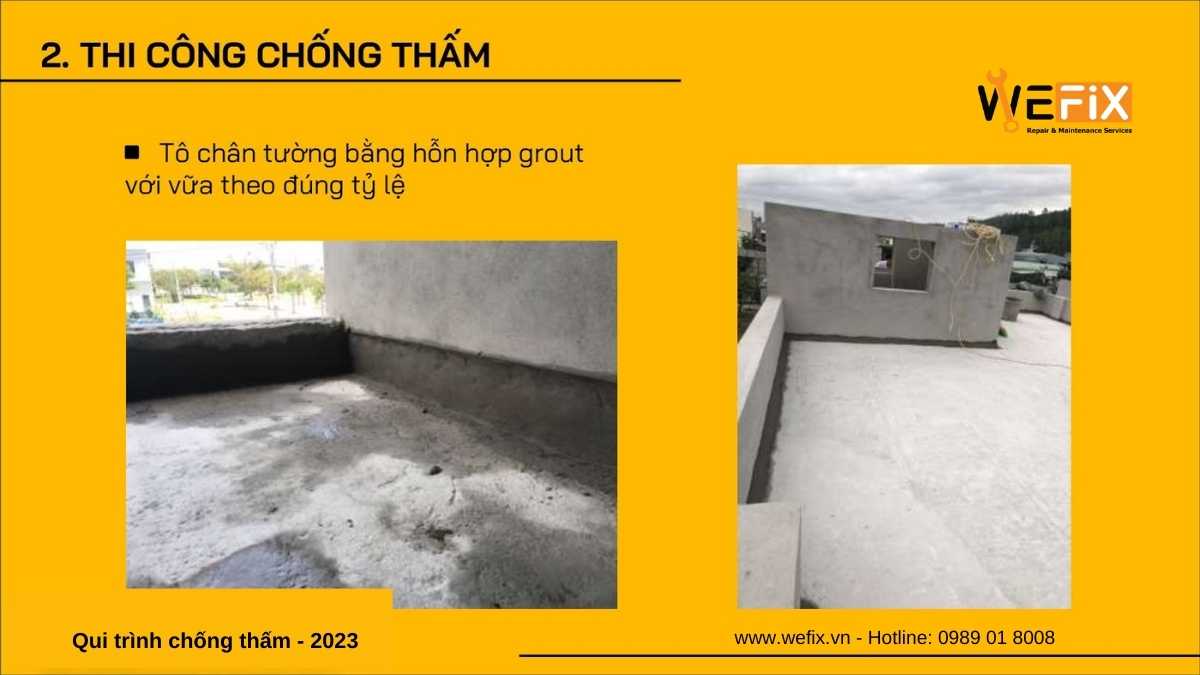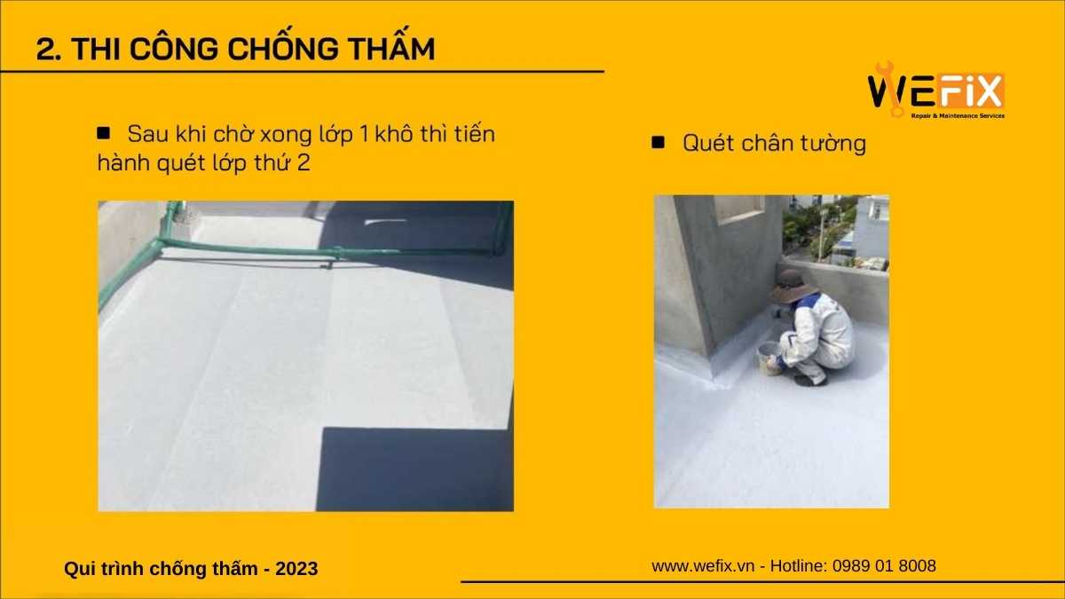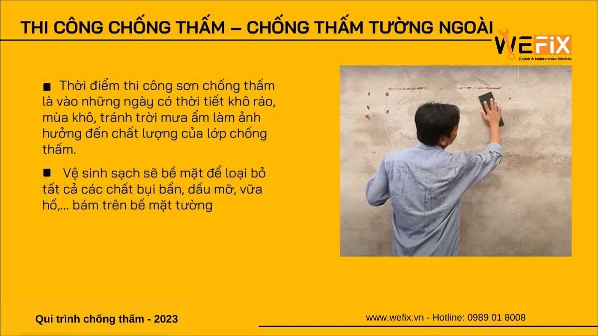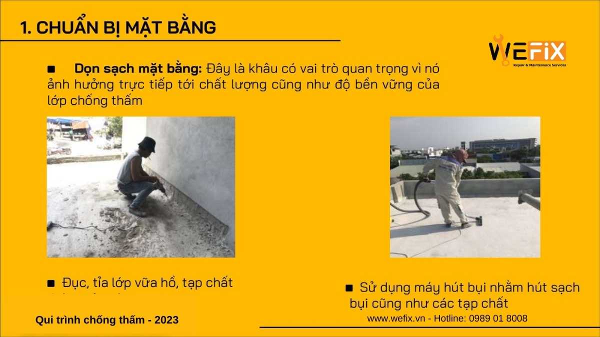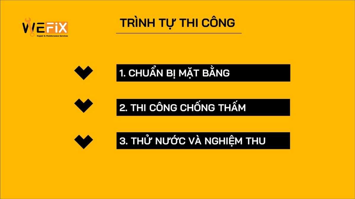Chống thấm là giải pháp bảo vệ công trình khỏi tác động của nước, hơi ẩm từ môi trường xung quanh. Quy trình thi công chống thấm hiện đại năm 2023 của thương hiệu Wefix (www.wefix.vn) thuộc sở hữu của công ty Smatek (www.smatek.vn) bao gồm các bước sau: