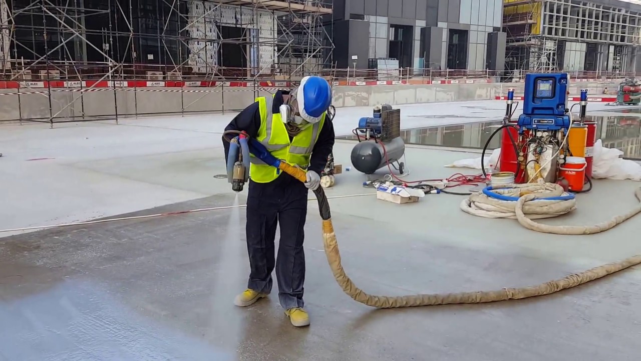 Sơn phủ Polyurea / polyurethane chỉ được thi công bởi hệ thông máy phun chuyên dụng và được trưc tiếp đứng máy phun là những kỹ sư và công nhân chuyên nghiệp, được huấn luyện kỹ theo các bước thi công tiêu chuẩn.