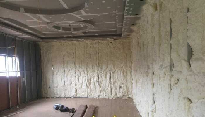- Cài đặt máy phun với tỉ lệ theo tiêu chuẩn và tiến hành phun, bơm vào hệ thống khung sắt hộp và tường sao cho vật liệu PU Foam nở che kín và khít lên tất cả bề mặt theo độ dày mà chủ đầu tư yêu cầu. Thông thường PU Foam được sử dụng là PU Foam mềm, có độ đàn hồi. có thể sử dụng PU Foam bơm hoặc PU Foam phun. Sử dụng PU Foam có tỉ trọng càng cao thì khả năng cách âm càng tốt.