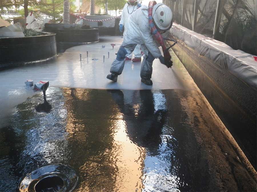 Lớp phủ chống thấm dạng phun được áp dụng tạo ra một lớp lót bảo vệ liền mạch, không thấm nước, bền, ngăn rò rỉ và tăng cường tính toàn vẹn của toàn bộ cấu trúc. Nó thể hiện các đặc tính vật lý vượt trội như độ giãn dài đến 400%, cầu nối nứt, độ cứng và độ bền kéo để tạo ra một lớp lót công nghiệp mạnh mẽ bảo vệ, tăng cường và chống thấm cho bê tông.